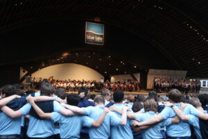 The first European guest group, Koor Vagantes Morborum from Brugges, Belgium, tours Michigan as part of Blue Lake’s International Exchange Program.